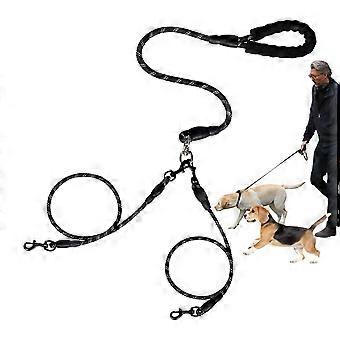 Double Dog Cable Adjustable Anti-Tangle Leash With Bungee Shock Absorber For Walks Outdoor Travel Poop Bags Black Size L
