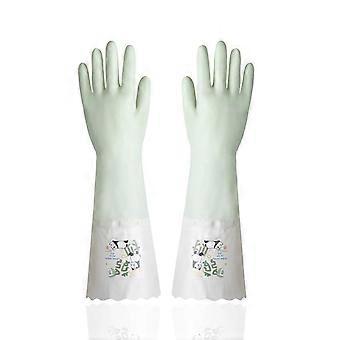 Rubber Gloves Long Sleeves Elastic Band Mouth Rubber Gloves Plush NonSlip Dishwashing Cleaning Gloves Waterproof Wearresistant(Green)