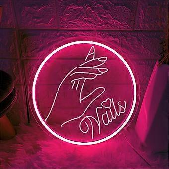 Nails Neon Sign Nail Salon LED Neon Light Sign For Beauty Wall Mounted 3D Carving With Dimmable Switch 35x35cm