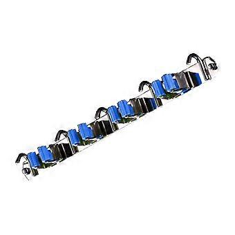 Punch Free Wall Mount Mop Broom Holder 4 Clips 5 Hooks Stainless Steel Mop Broom Holder Blue