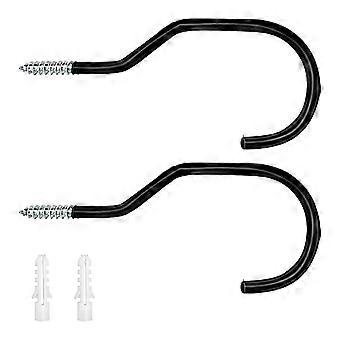 Road Bike Wall Mount Hook 2-Pack, Large Heavy-Duty Screw-In Ceiling Hook, Wheel Holder, Black Garage Organizer