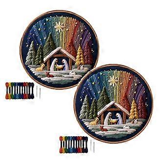 DIY Nativity Embroidery Kit with Fabric Thread Needles, Christian Scene Craft Set for Adults Beginners, 2 Pack