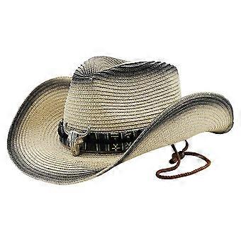 Wide Brim Cowboy Hat for Men and Women, Beige Sun Hat with Chin Strap, Travel Sombrero, Survival Harness