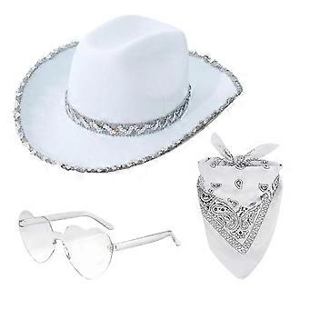 Pink Cowgirl Hat for Adults, Western Style Cowboy Hat with Heart-Shaped Sunglasses and Bandana, White Festival Costume Accessory