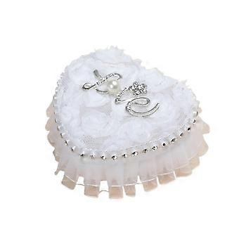 Elegant Lace Pearl Wedding Ring Bearer Pillow 19x19cm Cushion for Wedding Ceremony