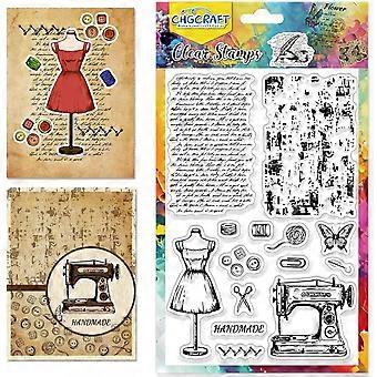 Vintage Sewing Text Clear Stamps Mannequin Sewing Machine Transparent Silicone Stamps Clear Stamp Seals Silicone Stamps for Card Making Decor Scrapboo
