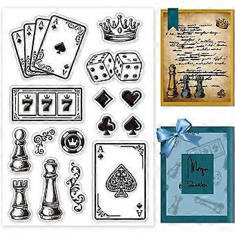 Chess Poker Game Clear Stamps Dice Clear Rubber Stamps Crown Silicone Stamps for DIY Scrapbooking Photo Album Decorative Cards Making Home Decoration