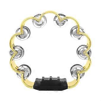 8-Inch Double-Row Round Musical Metal Bells Handheld Percussion Drum, Ergonomic Gold Finish