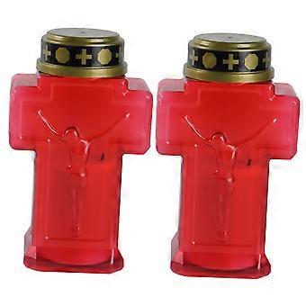Lighted Cross Candle Set - 2pcs Solar Powered Jesus Cross Battery Operated Decorative LED Candle Lights