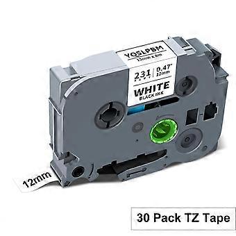 Label Maker Tape 12mm TZe231 Black on White, Waterproof Easy Peel for Brother PTouch 4 Pack