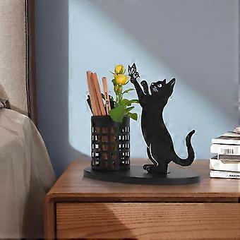 Cat Pencil Holder for Desk, Black Metal Pen Organizer for Bedroom and Office, Stylish Table Decor for Cat Lovers