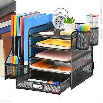 Desk Organizer with Drawers, Metal Mesh File Organizer Rack - Non-Slip Office Supply Storage for Home and Office