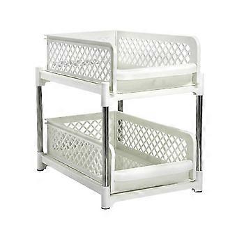 2Tier Sliding UnderSink Organizer, Adjustable Shelves With Drawers, Fits 33 cm Cabinet Opening, Bathroom Kitchen Blanc