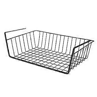 Hanging Storage Basket Under Shelf Iron Mesh Cupboard Door Organizer Rack 41.5x26.5x14cm Black