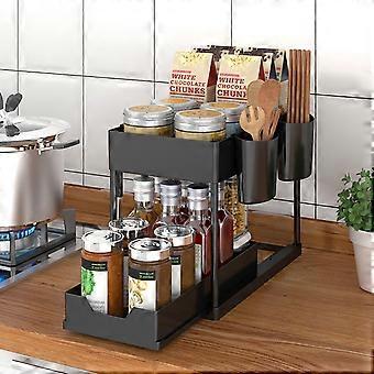 Double Pull Out Shelf Carbon Steel Rustproof Multifunctional Shelf For Kitchen, Bathroom And Balcony