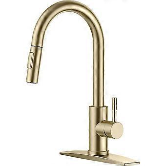 Waschtischarmatur Swivel Küchenhahn Messing Nickel Hoher Bogen Wasserhahn mit Ausziehbarem Sprühkopf für Waschbecken M Nickel