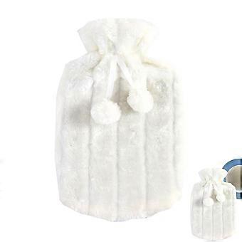 Kuumavesipullon suojus 2L, pörröinen pehmoinen suojus kivunlievitykseen, 30 x 20 cm, valkoinen (vesipullo ei sisälly)