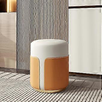 Round Foot Stool Ottoman with Khaki Fabric for Shoe Changing, Nursery, Entryway, Small Nordic Seat