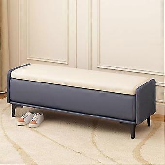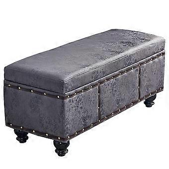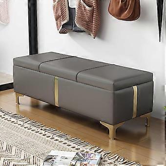 Leather Storage Ottoman Bench with Hidden Compartment, Solid Wood Legs, Nailhead Trim, Gray 120x40x45cm