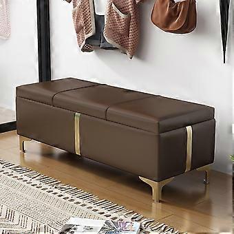 Storage Ottoman Stool with Gold Metal Legs for Living Room or Bedroom, Dark Brown 40x60cm