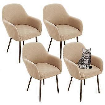 Dining Chair Covers with Arms Stretch Fit Jacquard Fabric Protector for Mid Century Modern Chairs Set of 4 Natural