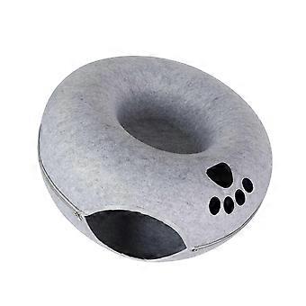 Pet Cat Tunnel, Donut Shape, Removable Nest, Light Gray Felt Interior 60x28cm for Cats and Small Animals