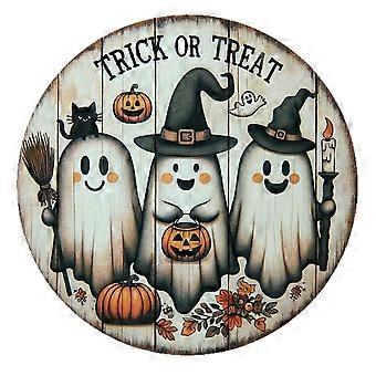 Halloween Welcome Door Sign, Wooden Seasonal Hanging Plaque, Ghost-Themed Porch Decoration, One Size Fits All