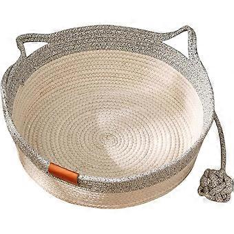 Woven Rope Cat Bed with Scratching Mat and Toy Ball, Small Gray Cozy Basket for Indoor Cats