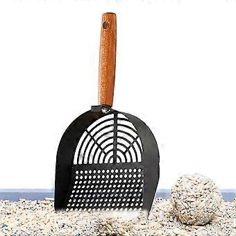 Iron Metal Cat Litter Scoop with Eucalyptus Wood Handle, Heavy Duty Non-Stick Shovel for Small and Large Clumps