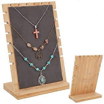 Wooden Necklace Display Stand with Gray Velvet Jewelry Organizer for Craft Shows, 17x9.5x25cm Size