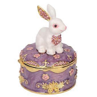 Rabbit Trinket Box, Vintage Metal Enamel Jewelry Storage Box, Floral Engraving Pattern, For Earrings, Rings, Necklace
