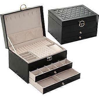 Three-layer Leather Jewelry Box with Lock – Portable Multifunctional Jewelry Storage for Earrings, Rings, Necklaces, Bracelets