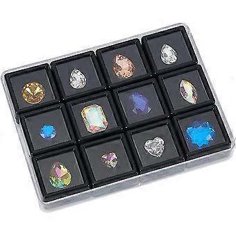12 Gemstone Boxes with Case 1x1 inch Square Gem Holder Plastic Display Box Storage Box Diamond Display Case Gems Organizer with Foam for Collectibles