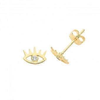9ct Gold Evil Eye Stud Earrings with Zirconia Accents ES1607 Acotis Gold Jewellery
