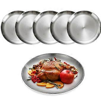 Silver Gold Stainless Steel Cake Plates 20cm Round Western Steak Plates for Home Office Wedding Parties