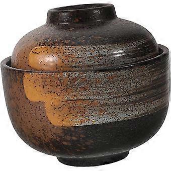 Japanese Miso Soup Bowl with Airtight Lid, Black Rice Bowl for Home and Restaurant Use