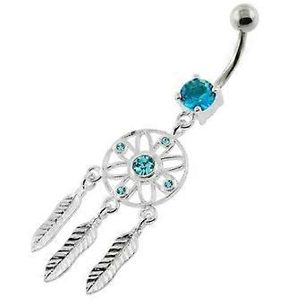 Silver Dream Catcher With Jewelled Feathers Fancy Navel Banana Bar Ring Monster Piercing