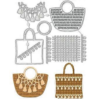 Knitted Basket Cutting Dies, Tassel Embellished Braided Bag Carbon Steel Embossing Tool Die Cuts Metal Templates for DIY Scrapbooking, Greeting Card,