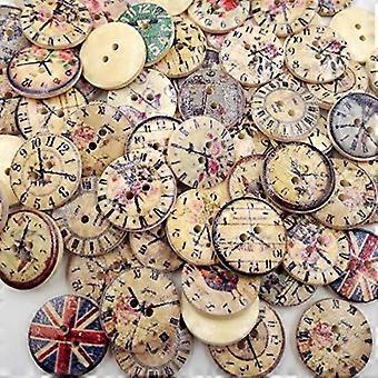 Round Wooden Clock Buttons Decorative 50 Pcs 20mm 2Hole Vintage Style