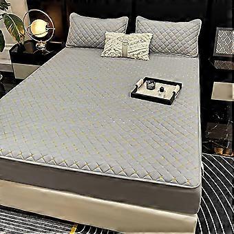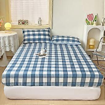 King Size Fitted Sheets Breathable All Around Elastic Deep Pocket 27cm 3D Plaid Grey Blue 2 Pillowcases