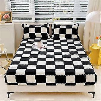 Fitted Sheet Soft Velvet, Checked Pattern, Black White, 90 x 200 cm, All Seasons Bedding Textiles