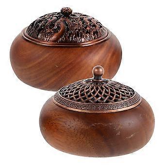 Wooden Incense Burner 2Piece Solid Wood Holder Lid for Incense Sticks and Cones Organizer Home Decor