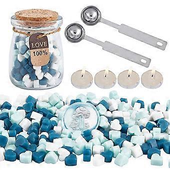 Sealing Wax Beads Kit Wax Seal Beads Octagon Packed in Glass Jar with 2PCS Candles and Wax Melting Spoon Wax Stamp Pens for Wax Seal Stamp Sealing Env