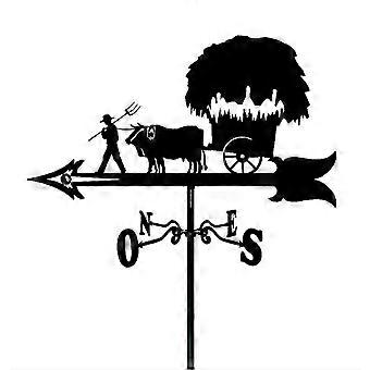Farm Weather Vane Metal Wind Direction Indicator for Roof or Garden with Farmer and Cow Scene