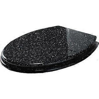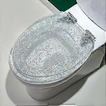 Elongated Soft Close Toilet Seat with Quick Release, Glitter Resin, Fix, Silver Foil Finish