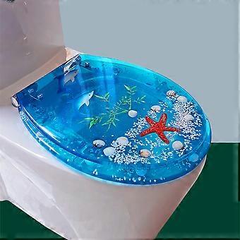 Toilet Seat Soft Closing Quick Release Adjustable Stainless Steel Hinges Resin Material Blue Sea Bream