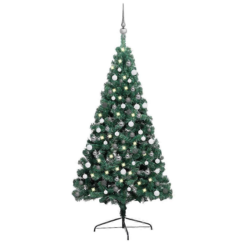 Künstlicher Halb-Weihnachtsbaum Beleuchtung Kugeln Grün 210 cm