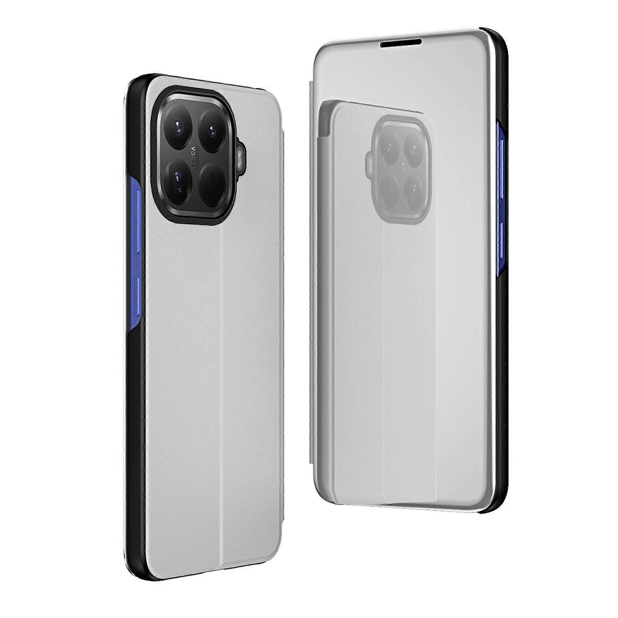 Für Xiaomi 15T Pro Kunstleder View Spiegel Wake UP Smart Hülle Silber