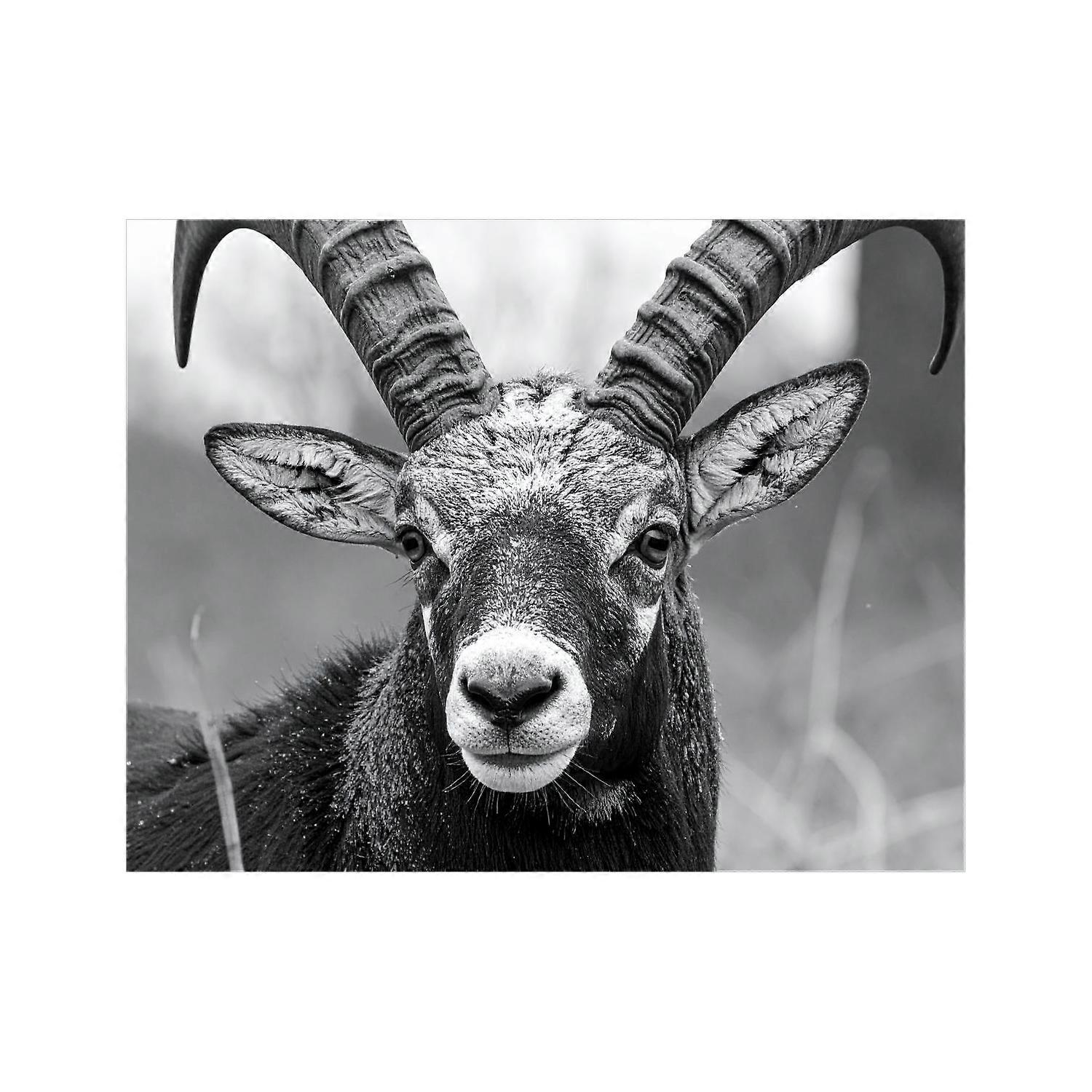 Wandbild Steinbock Schwarz Weiss 2