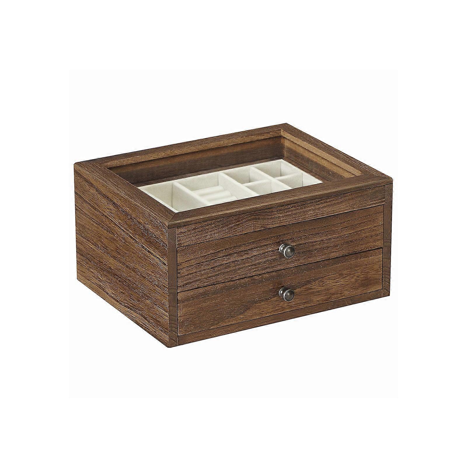Sieradendoos Met Glazen Deksel Bruin 25 X 21 X 13 Cm
